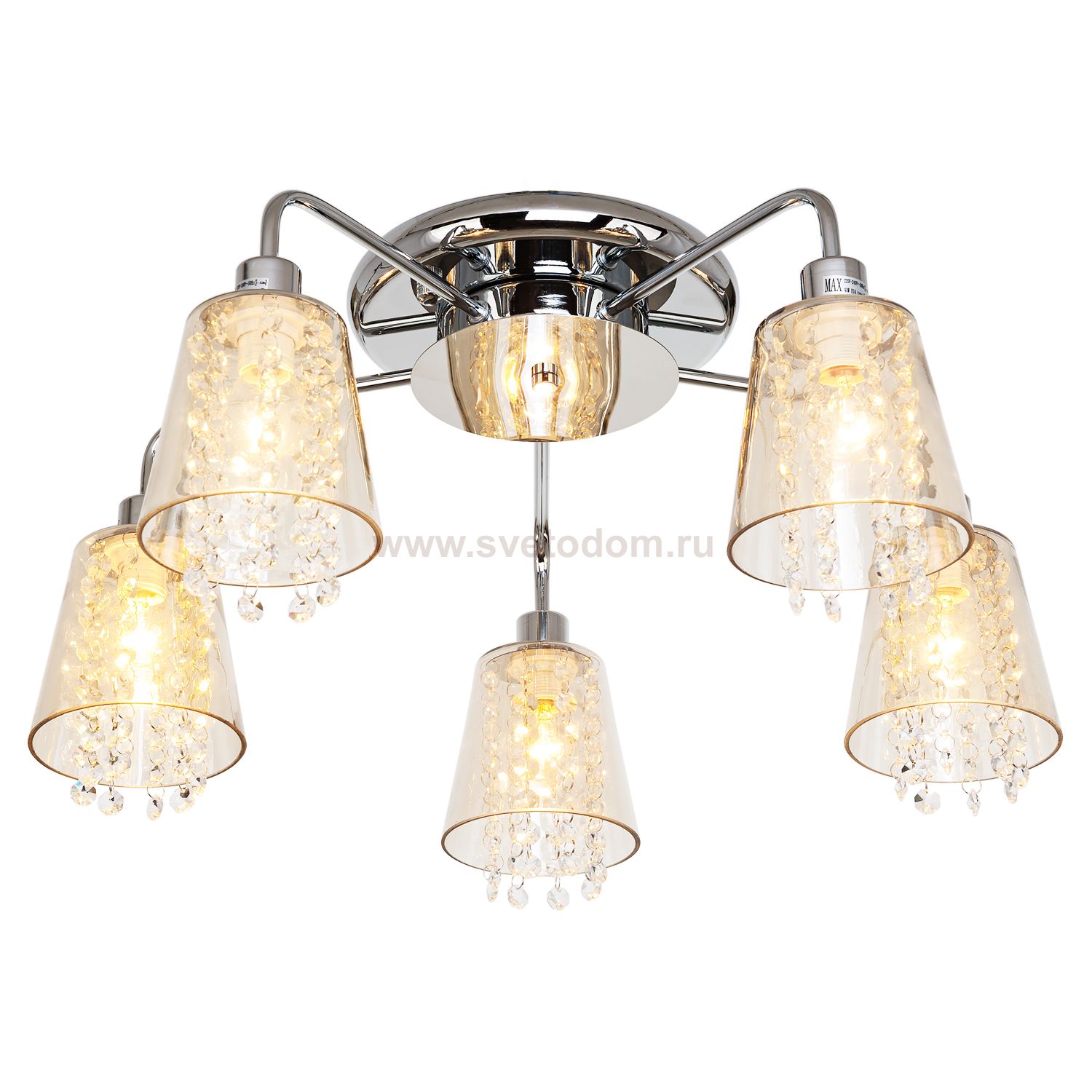 Потолочная люстра G31047/5CR AMB от бренда Gerhort. Каркас выполнен из материала металл, цвет хром. Плафоны (светорассеиватели) выполнены из материалов стекло и хрусталь; цвета: янтарный и прозрачный. Цоколь E14 рассчитан на лампы максимальной мощности до 40 Вт, а максимальная площадь освещения составит до 11 м?.
