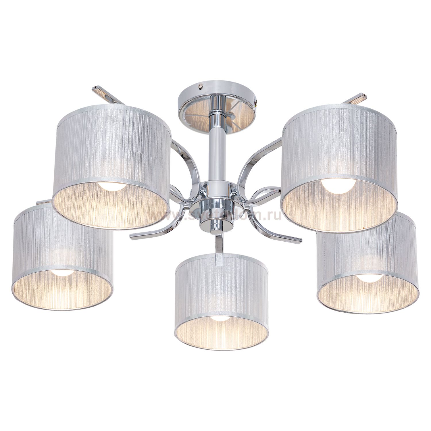 Потолочная люстра G31068/5CR SL от бренда Gerhort. Каркас выполнен из материала металл, цвет хром. Плафоны (светорассеиватели) выполнены из материала текстиль, цвет серый. Цоколь E14 рассчитан на лампы максимальной мощности до 40 Вт, а максимальная площадь освещения составит до 11 м?.
