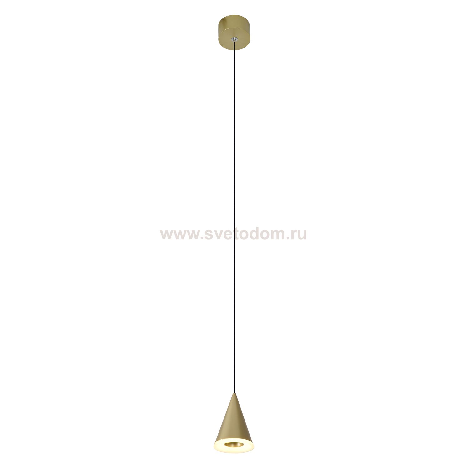 Подвесной светодиодный светильник G51184/1GD в современном стиле от бренда Gerhort. Каркас выполнен из материала металл, цвет матовое золото. Плафон (светорассеиватель) выполнен из материалов акрил и металл; цвета: матовое золото и белый. Встроенные LED модули на 5 Вт осветят до 2 м?. Свет теплый, мягкий.