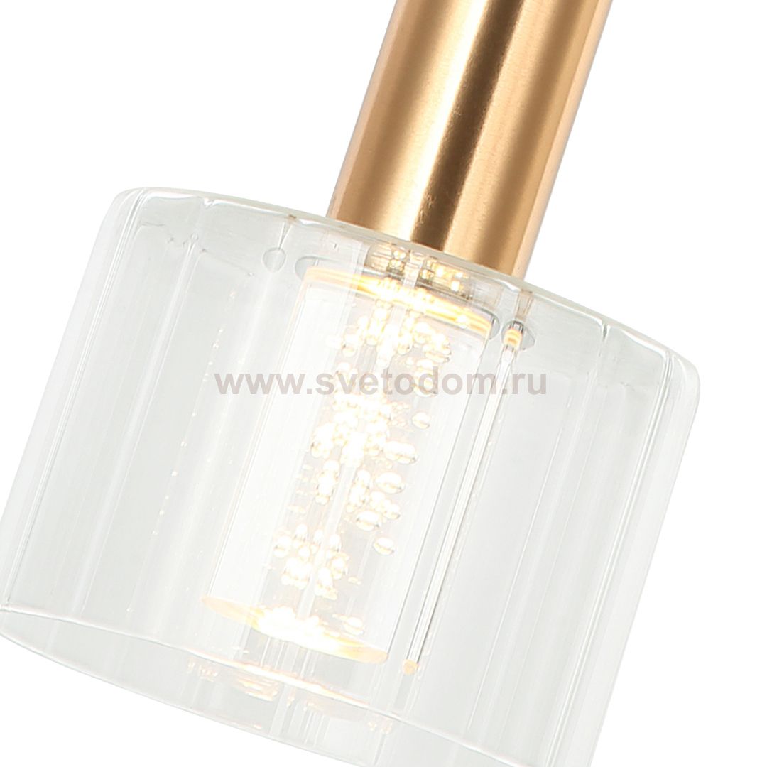 Подвесной светильник G51186/1SGD в современном стиле от бренда Gerhort. Каркас выполнен из материала металл, цвет матовое золото. Плафон (светорассеиватель) выполнен из материала стекло, цвет прозрачный. Встроенные LED модули на 5 Вт осветят до 2 м?. Свет теплый, мягкий.