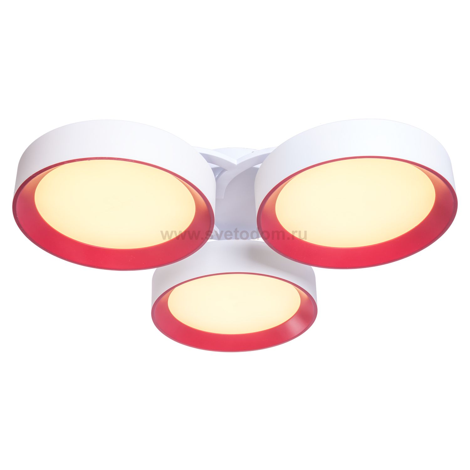 Потолочный светодиодный светильник G61015/3WT+RD в современном стиле от бренда Gerhort. Каркас выполнен из материала металл, цвет белый. Плафоны (светорассеиватели) выполнены из материалов акрил и металл; цвета: красный и белый. Встроенные LED модули на 48 Вт осветят до 25 м?. Свет теплый, мягкий.