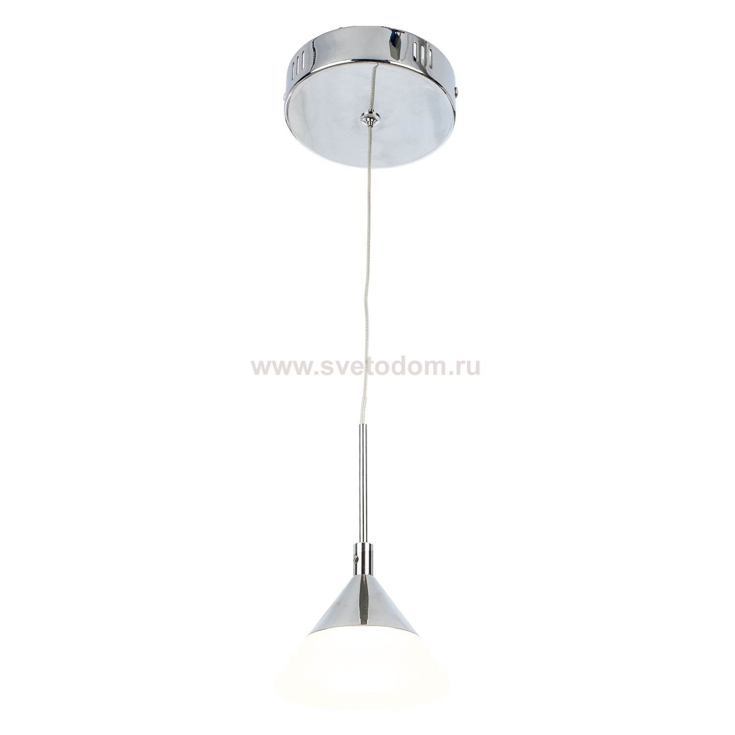 Подвесной светодиодный светильник G61048/1CR в современном стиле от бренда Gerhort. Каркас выполнен из материала металл, цвет хром. Плафон (светорассеиватель) выполнен из материала акрил, цвет белый. Встроенные LED модули на 5 Вт осветят до 1 м?. Свет теплый, мягкий.