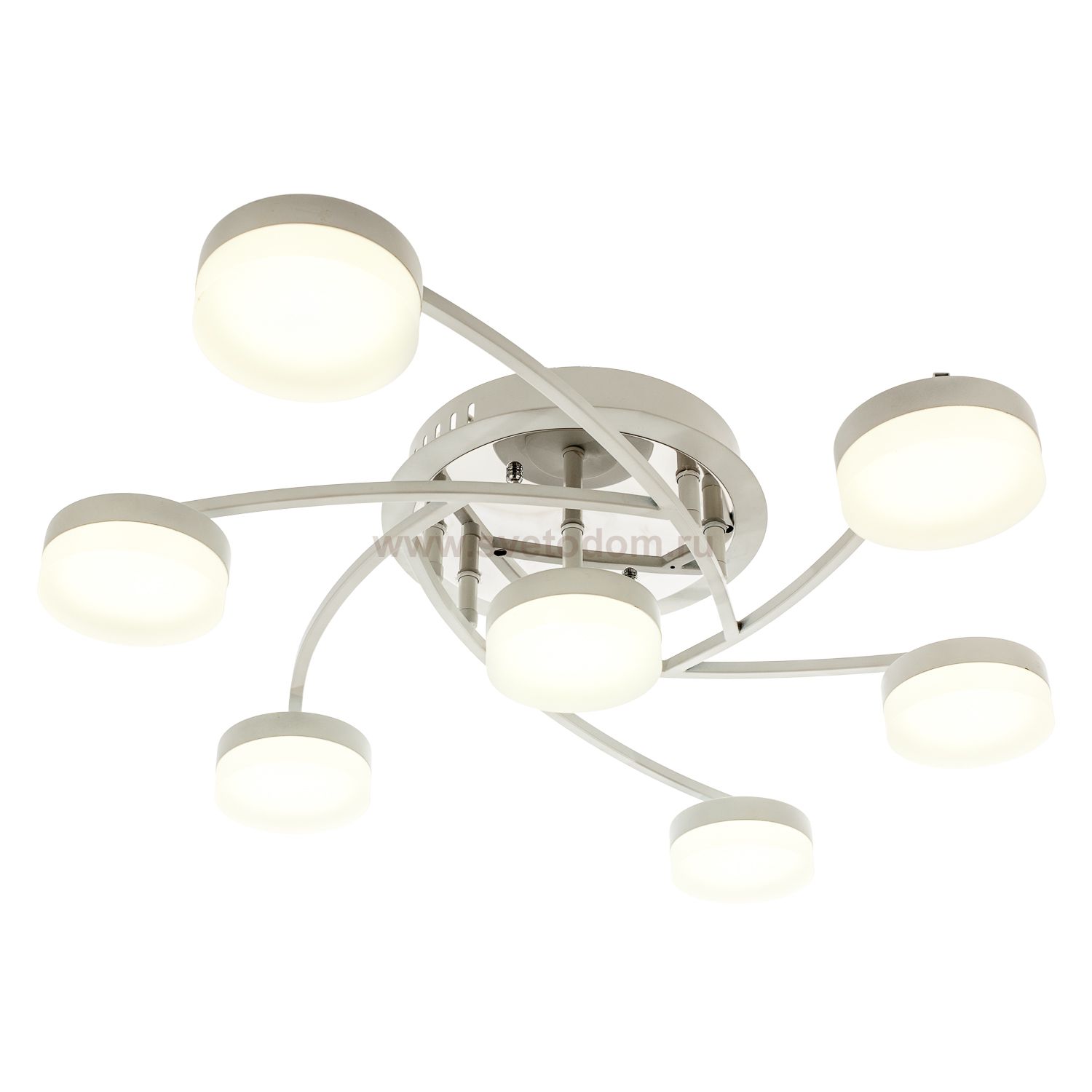 Потолочная светодиодная люстра G61075/7 в современном стиле с пультом дистанционного управления от бренда Gerhort. Каркас выполнен из материала металл, цвет хром. Плафоны (светорассеиватели) выполнены из материала акрил, цвет белый. Встроенные LED модули на 28 Вт осветят до 11 м?. Свет дневной.