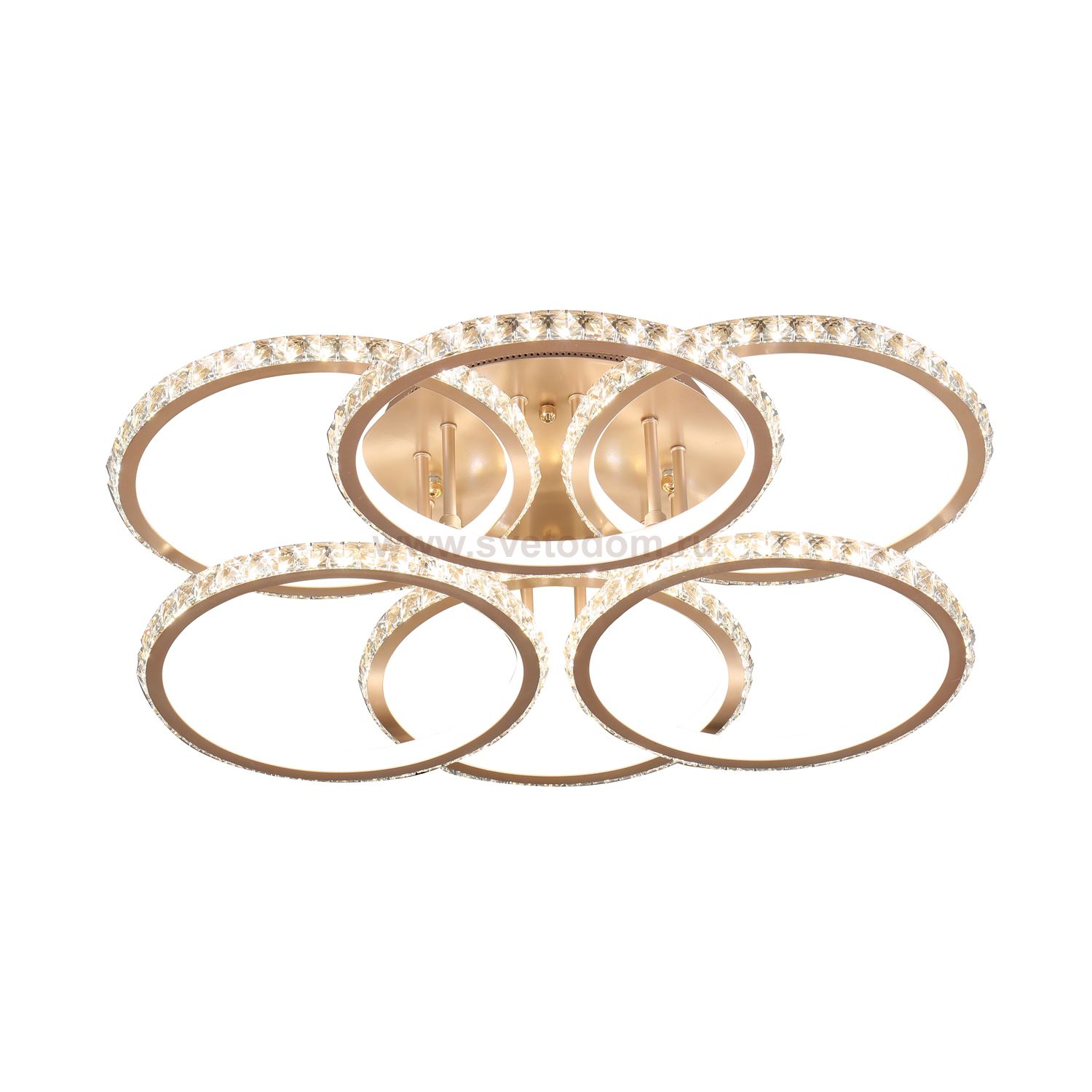 Светодиодный светильник G61312/6GD в современном стиле с пультом дистанционного управления от бренда Gerhort. Каркас выполнен из материала металл, цвет золото. Плафоны (светорассеиватели) выполнены из материалов пластик и хрусталь; цвета: белый и прозрачный. Встроенные LED модули на 295 Вт осветят до 30 м?. Есть регулировка цветовой температуры и яркости.