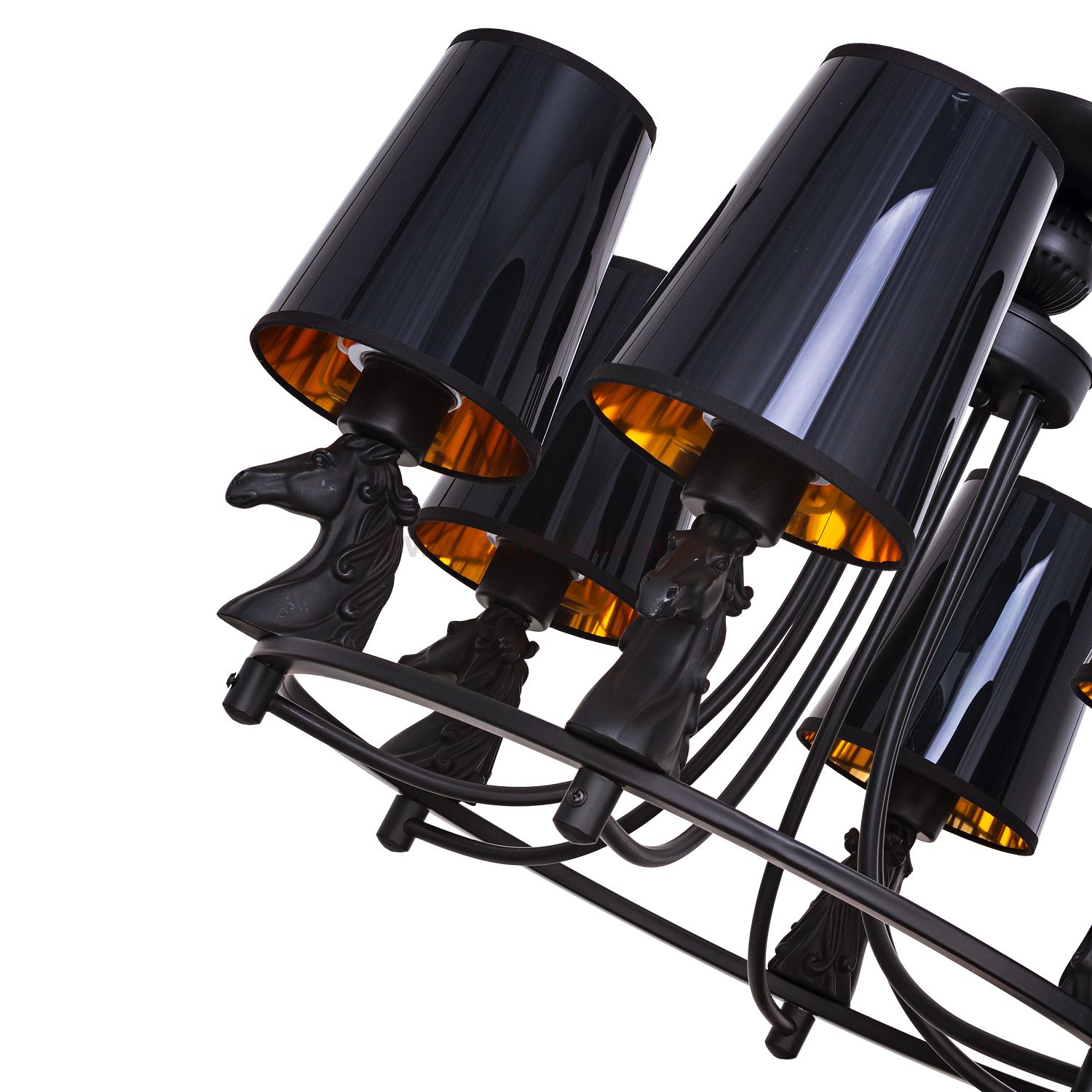 Подвесная люстра G71134/6BK BK+GD от бренда Gerhort. Каркас выполнен из материала металл, цвет черный. Плафоны (светорассеиватели) выполнены из материала пластик, цвет черный, золотой. Цоколь E27 рассчитан на лампы максимальной мощности до 40 Вт, а максимальная площадь освещения составит до 13 м?.