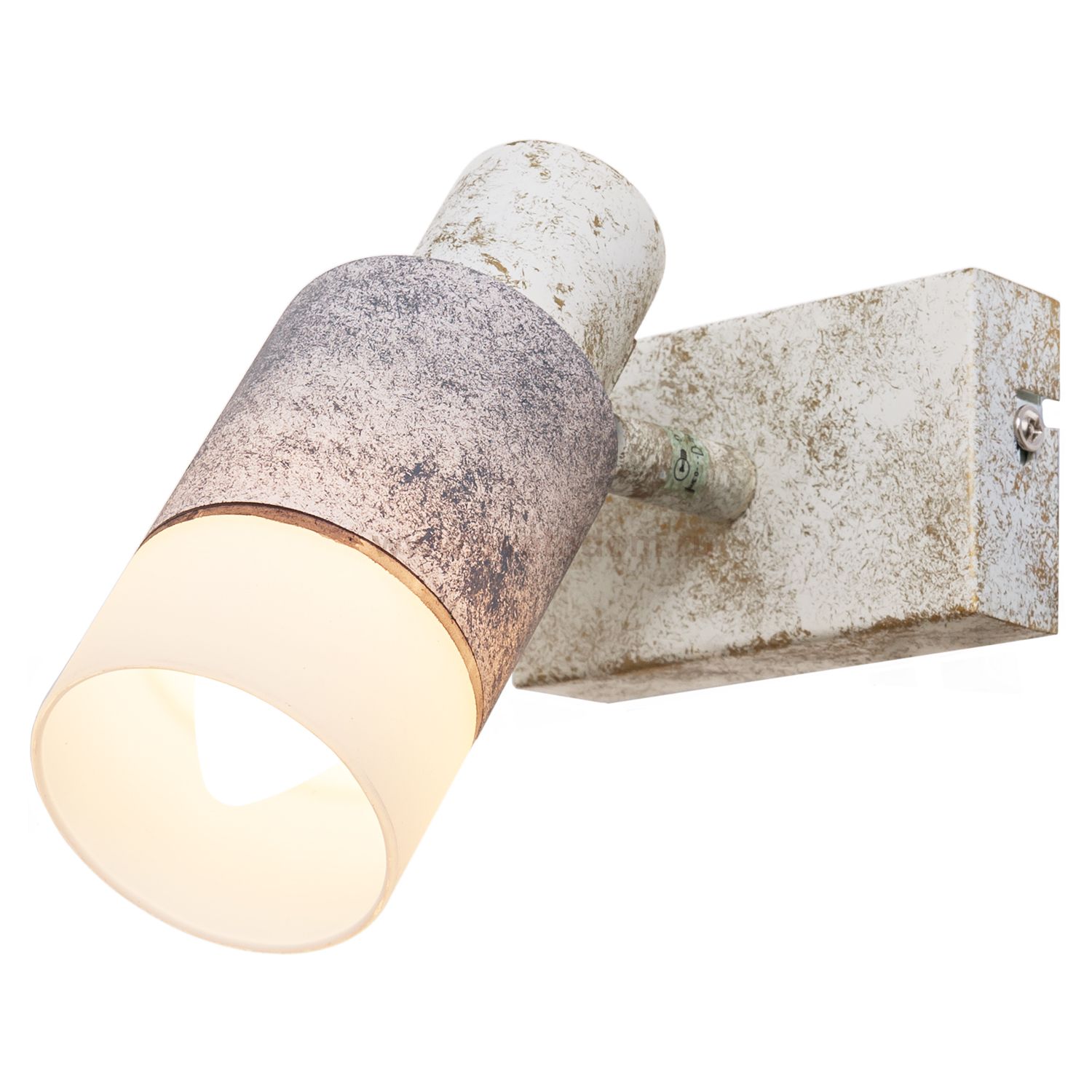 Спотовый светильник G81038/1wWH WH от бренда Gerhort. Каркас выполнен из материала металл, цвет серый с патиной. Плафон (светорассеиватель) выполнен из материала стекло; цвета: белый и серый с патиний. Цоколь E14 рассчитан на лампы максимальной мощности до 40 Вт, а максимальная площадь освещения составит до 2 м?.