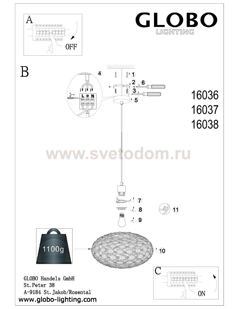 Подвесной светильник – это универсальный вариант, подходящий для любой комнаты. Сегодня производители предлагают огромный выбор таких моделей по самым разным ценам. В каталоге интернет-магазина «Светодом» мы собрали большое количество интересных и оригинальных светильников по выгодной стоимости. Вы можете приобрести их в Москве, Екатеринбурге и любом другом городе России. Подвесной светильник Globo 16036 сразу же привлечет внимание Ваших гостей благодаря стильному исполнению. Благородный дизайн позволит использовать эту модель практически в любом интерьере. Она обеспечит достаточно света и при этом легко монтируется. Чтобы купить подвесной светильник Globo 16036, воспользуйтесь формой на нашем сайте или позвоните менеджерам интернет-магазина.