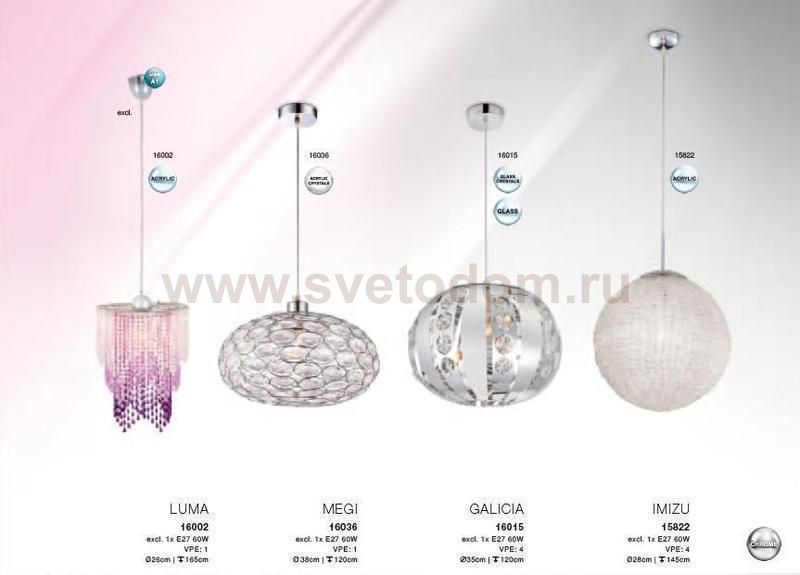 579 Отзывы Светильник подвесной Globo 16036 MegiПока нет отзывов об этом товаре, напишите и он обязательно появится после модерации! Оставить свой отзывПохожие товары Другие товары магазина Фото