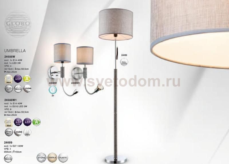 Светильник настенный Globo 24688W MORELIA сделает Ваш интерьер современным, стильным и запоминающимся! Наиболее функционально и эстетически привлекательно модель будет смотреться в гостиной, зале, холле или другой комнате. А в комплекте с люстрой и торшером из этой же коллекции сделает интерьер по-дизайнерски профессиональным и законченным.