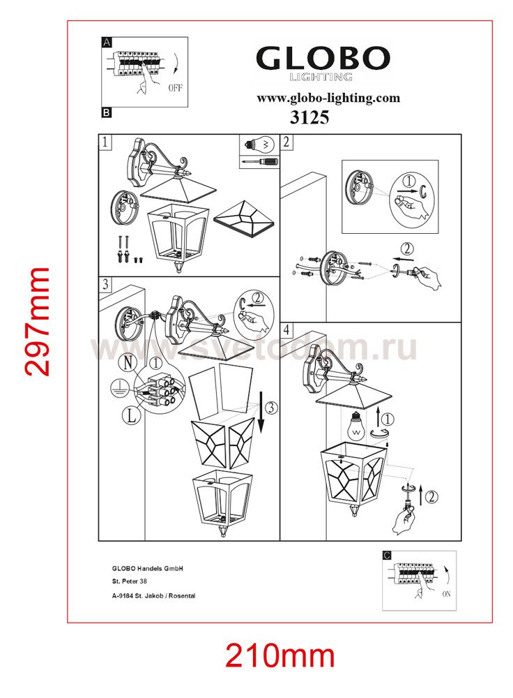 Обеспечение качественного уличного освещения – важная задача для владельцев коттеджей. Компания «Светодом» предлагает современные светильники, которые порадуют Вас отличным исполнением. В нашем каталоге представлена продукция известных производителей, пользующихся популярностью благодаря высокому качеству выпускаемых товаров. Уличный светильник Globo 3125 не просто обеспечит качественное освещение, но и станет украшением Вашего участка. Модель выполнена из современных материалов и имеет влагозащитный корпус, благодаря которому ей не страшны осадки. Купить уличный светильник Globo 3125, представленный в нашем каталоге, можно с помощью онлайн-формы для заказа. Чтобы задать имеющиеся вопросы, звоните нам по указанным телефонам.