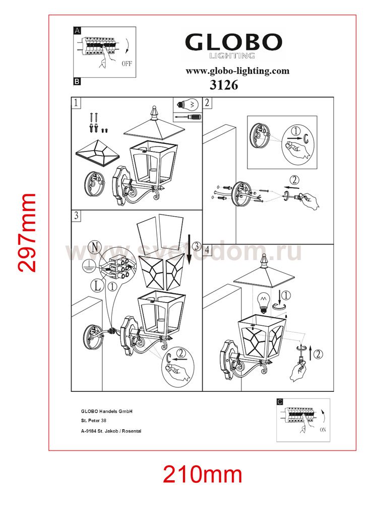 Обеспечение качественного уличного освещения – важная задача для владельцев коттеджей. Компания «Светодом» предлагает современные светильники, которые порадуют Вас отличным исполнением. В нашем каталоге представлена продукция известных производителей, пользующихся популярностью благодаря высокому качеству выпускаемых товаров. Уличный светильник Globo 3126 не просто обеспечит качественное освещение, но и станет украшением Вашего участка. Модель выполнена из современных материалов и имеет влагозащитный корпус, благодаря которому ей не страшны осадки. Купить уличный светильник Globo 3126, представленный в нашем каталоге, можно с помощью онлайн-формы для заказа. Чтобы задать имеющиеся вопросы, звоните нам по указанным телефонам.