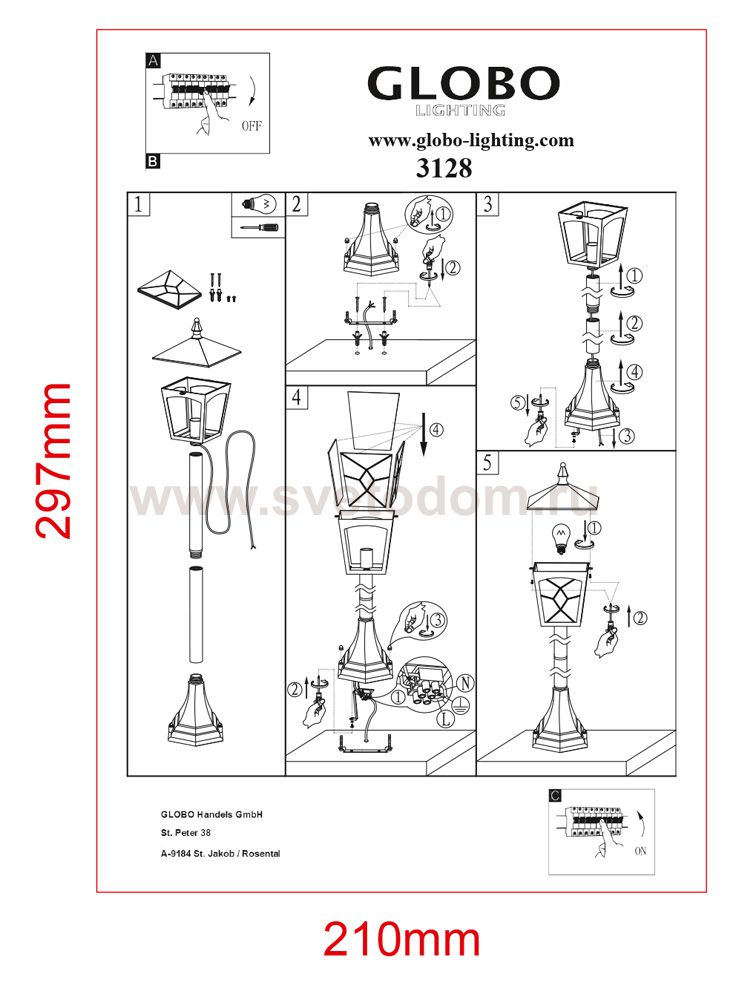 Обеспечение качественного уличного освещения – важная задача для владельцев коттеджей. Компания «Светодом» предлагает современные светильники, которые порадуют Вас отличным исполнением. В нашем каталоге представлена продукция известных производителей, пользующихся популярностью благодаря высокому качеству выпускаемых товаров. Уличный светильник Globo 3128 не просто обеспечит качественное освещение, но и станет украшением Вашего участка. Модель выполнена из современных материалов и имеет влагозащитный корпус, благодаря которому ей не страшны осадки. Купить уличный светильник Globo 3128, представленный в нашем каталоге, можно с помощью онлайн-формы для заказа. Чтобы задать имеющиеся вопросы, звоните нам по указанным телефонам.