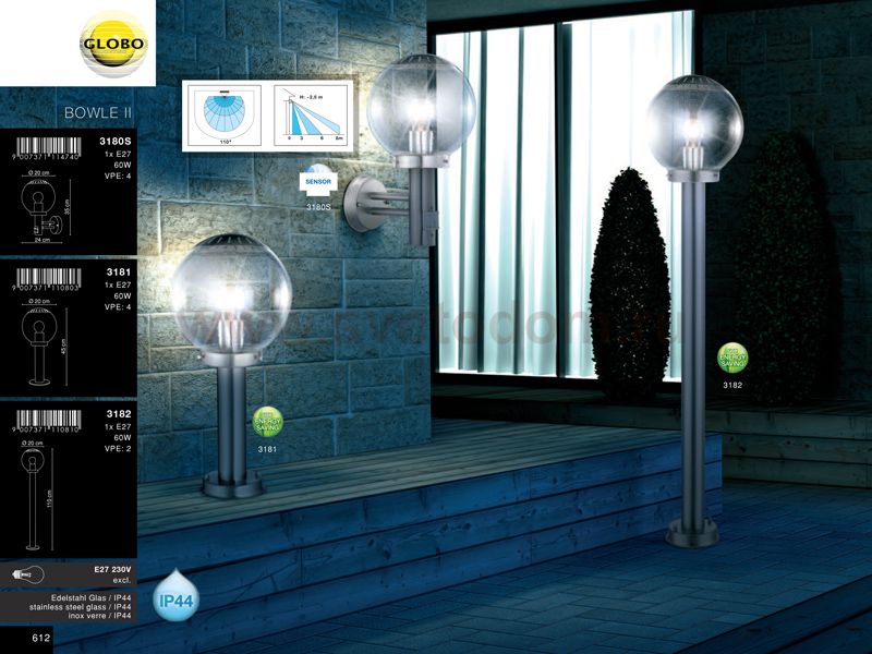Обеспечение качественного уличного освещения – важная задача для владельцев коттеджей. Компания «Светодом» предлагает современные светильники, которые порадуют Вас отличным исполнением. В нашем каталоге представлена продукция известных производителей, пользующихся популярностью благодаря высокому качеству выпускаемых товаров. Уличный светильник Globo 3182 не просто обеспечит качественное освещение, но и станет украшением Вашего участка. Модель выполнена из современных материалов и имеет влагозащитный корпус, благодаря которому ей не страшны осадки. Купить уличный светильник Globo 3182, представленный в нашем каталоге, можно с помощью онлайн-формы для заказа. Чтобы задать имеющиеся вопросы, звоните нам по указанным телефонам.
