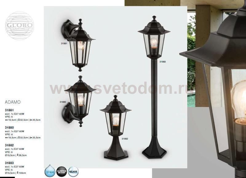 Светильник уличный ADAMO 31880 Globo не просто обеспечит качественное наружное освещение, но и станет украшением Вашего загородного участка. Модель выполнена из современных материалов и имеет влагозащитный корпус, благодаря которому ей не страшны осадки.