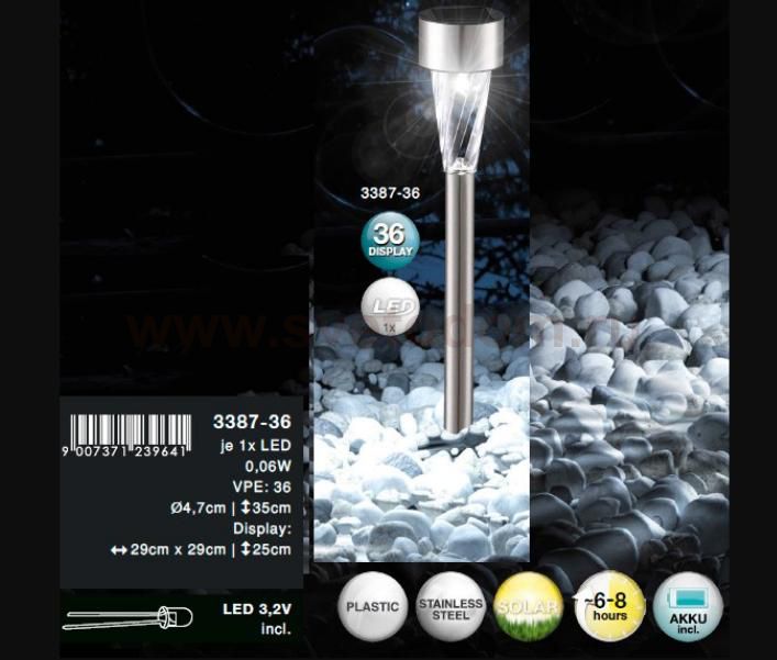 Светильник на солнечной батарее Globo 3387-36 не просто обеспечит качественное наружное освещение, но и станет украшением Вашего загородного участка. Модель выполнена из современных материалов и имеет влагозащитный корпус, благодаря которому ей не страшны осадки.