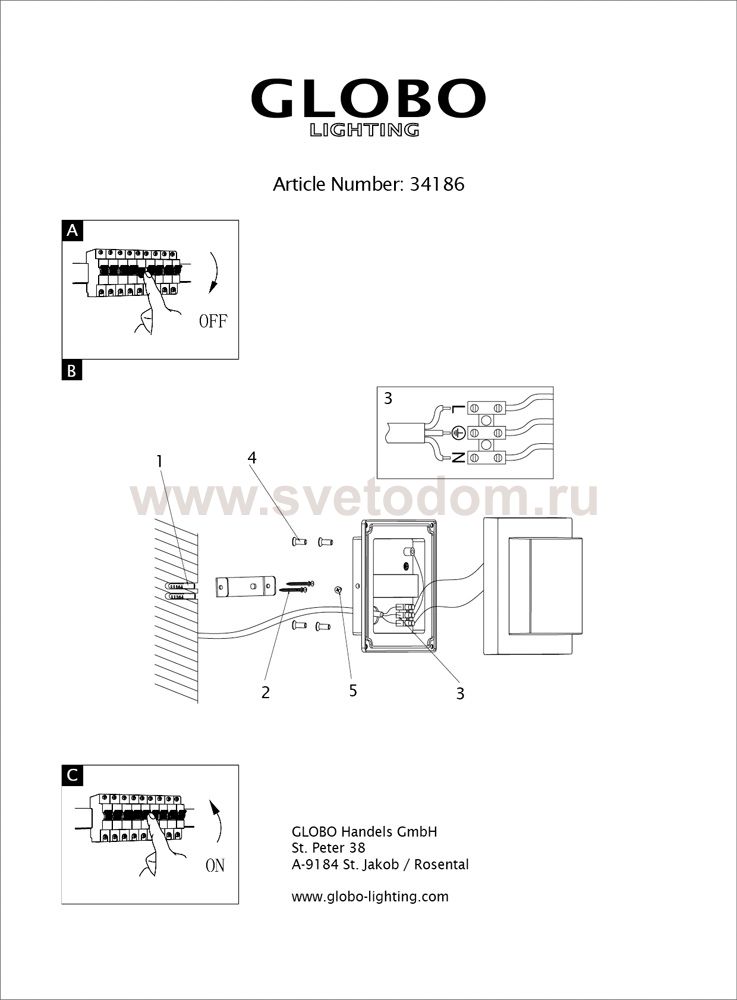 Обеспечение качественного уличного освещения – важная задача для владельцев коттеджей. Компания «Светодом» предлагает современные светильники, которые порадуют Вас отличным исполнением. В нашем каталоге представлена продукция известных производителей, пользующихся популярностью благодаря высокому качеству выпускаемых товаров. Уличный светильник Globo 34186 не просто обеспечит качественное освещение, но и станет украшением Вашего участка. Модель выполнена из современных материалов и имеет влагозащитный корпус, благодаря которому ей не страшны осадки. Купить уличный светильник Globo 34186, представленный в нашем каталоге, можно с помощью онлайн-формы для заказа. Чтобы задать имеющиеся вопросы, звоните нам по указанным телефонам.