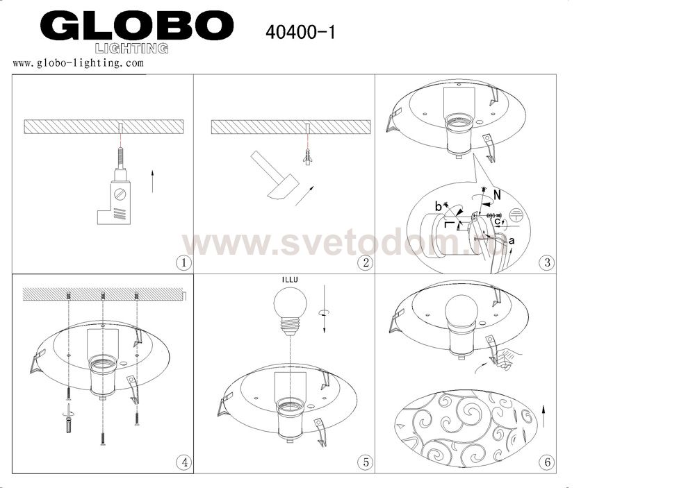 Настенно потолочный светильник Globo (Глобо) 40400-1 подходит как для установки в вертикальном положении - на стены, так и для установки в горизонтальном - на потолок. Для установки настенно потолочных светильников на натяжной потолок необходимо использовать светодиодные лампы LED, которые экономнее ламп Ильича (накаливания) в 10 раз, выделяют мало тепла и не дадут расплавиться Вашему потолку.