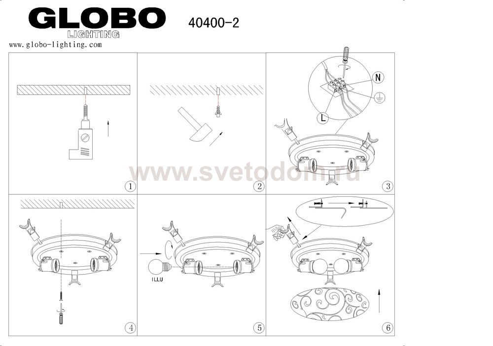 Настенно потолочный светильник Globo (Глобо) 40400-2 подходит как для установки в вертикальном положении - на стены, так и для установки в горизонтальном - на потолок. Для установки настенно потолочных светильников на натяжной потолок необходимо использовать светодиодные лампы LED, которые экономнее ламп Ильича (накаливания) в 10 раз, выделяют мало тепла и не дадут расплавиться Вашему потолку.