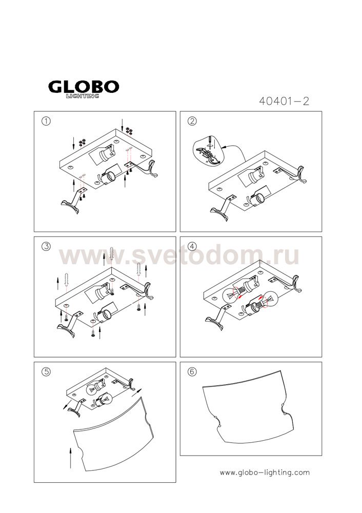 Настенно потолочный светильник Globo (Глобо) 40401-2 подходит как для установки в вертикальном положении - на стены, так и для установки в горизонтальном - на потолок. Для установки настенно потолочных светильников на натяжной потолок необходимо использовать светодиодные лампы LED, которые экономнее ламп Ильича (накаливания) в 10 раз, выделяют мало тепла и не дадут расплавиться Вашему потолку.