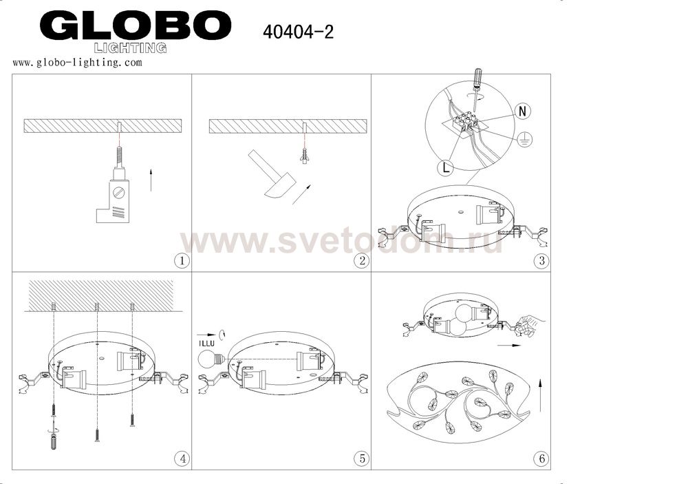 Настенно потолочный светильник Globo (Глобо) 40404-2 подходит как для установки в вертикальном положении - на стены, так и для установки в горизонтальном - на потолок. Для установки настенно потолочных светильников на натяжной потолок необходимо использовать светодиодные лампы LED, которые экономнее ламп Ильича (накаливания) в 10 раз, выделяют мало тепла и не дадут расплавиться Вашему потолку.