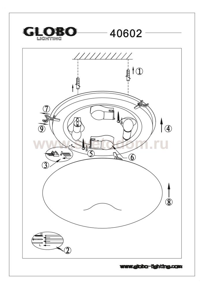 Настенно потолочный светильник Globo (Глобо) 40602 подходит как для установки в вертикальном положении - на стены, так и для установки в горизонтальном - на потолок. Для установки настенно потолочных светильников на натяжной потолок необходимо использовать светодиодные лампы LED, которые экономнее ламп Ильича (накаливания) в 10 раз, выделяют мало тепла и не дадут расплавиться Вашему потолку.