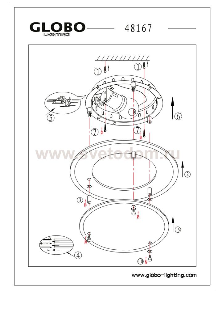 Настенно потолочный светильник Globo (Глобо) 48167 подходит как для установки в вертикальном положении - на стены, так и для установки в горизонтальном - на потолок. Для установки настенно потолочных светильников на натяжной потолок необходимо использовать светодиодные лампы LED, которые экономнее ламп Ильича (накаливания) в 10 раз, выделяют мало тепла и не дадут расплавиться Вашему потолку.