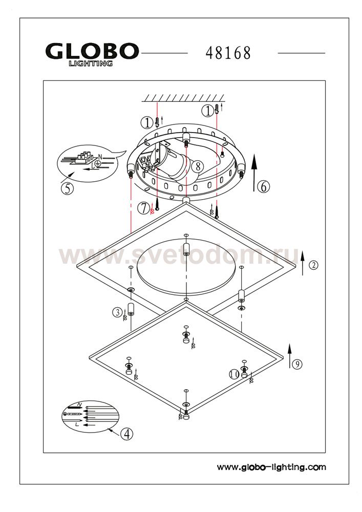 Настенно потолочный светильник Globo (Глобо) 48168 подходит как для установки в вертикальном положении - на стены, так и для установки в горизонтальном - на потолок. Для установки настенно потолочных светильников на натяжной потолок необходимо использовать светодиодные лампы LED, которые экономнее ламп Ильича (накаливания) в 10 раз, выделяют мало тепла и не дадут расплавиться Вашему потолку.