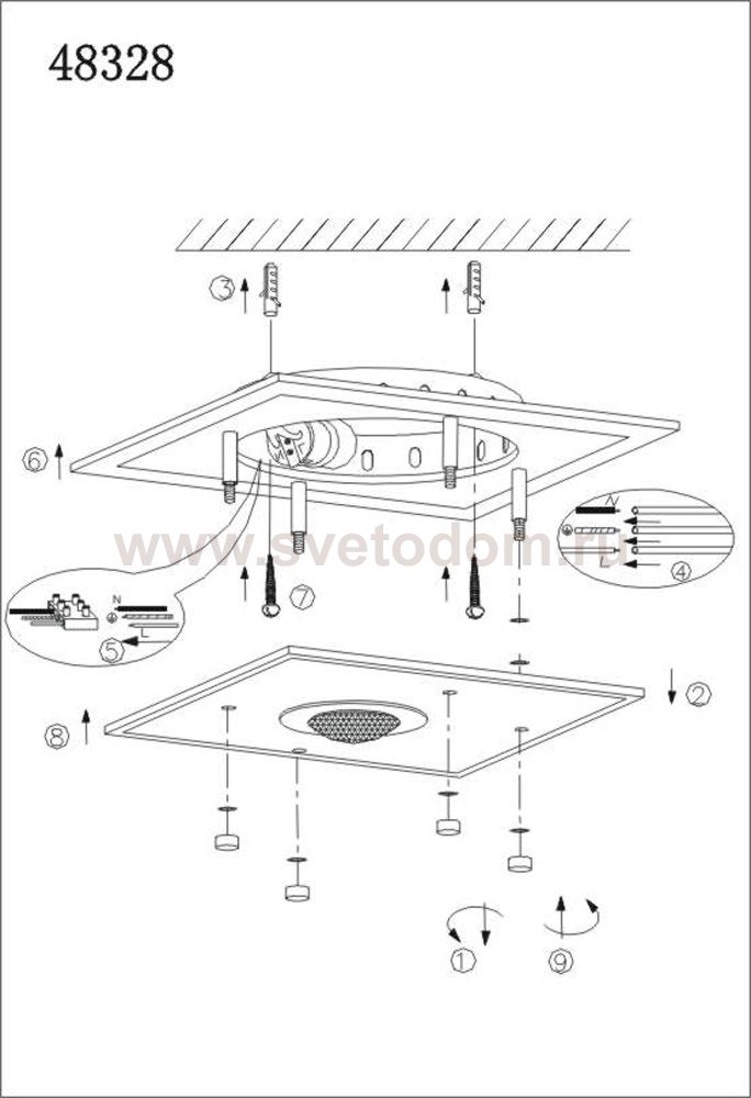 Настенно потолочный светильник Globo (Глобо) 48328 подходит как для установки в вертикальном положении - на стены, так и для установки в горизонтальном - на потолок. Для установки настенно потолочных светильников на натяжной потолок необходимо использовать светодиодные лампы LED, которые экономнее ламп Ильича (накаливания) в 10 раз, выделяют мало тепла и не дадут расплавиться Вашему потолку.