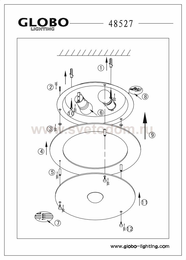Настенно потолочный светильник Globo (Глобо) 48527 подходит как для установки в вертикальном положении - на стены, так и для установки в горизонтальном - на потолок. Для установки настенно потолочных светильников на натяжной потолок необходимо использовать светодиодные лампы LED, которые экономнее ламп Ильича (накаливания) в 10 раз, выделяют мало тепла и не дадут расплавиться Вашему потолку.