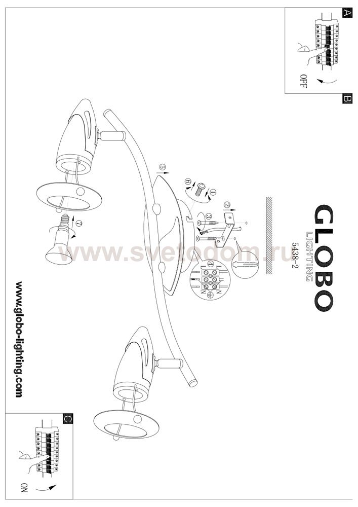 Светильники-споты – это оригинальные изделия с современным дизайном. Они позволяют не ограничивать свою фантазию при выборе освещения для интерьера. Такие модели обеспечивают достаточно качественный свет. Благодаря компактным размерам Вы можете использовать несколько спотов для одного помещения. Интернет-магазин «Светодом» предлагает необычный светильник-спот Globo 5438-2 по привлекательной цене. Эта модель станет отличным дополнением к люстре, выполненной в том же стиле. Перед оформлением заказа изучите характеристики изделия. Купить светильник-спот Globo 5438-2 в нашем онлайн-магазине Вы можете либо с помощью формы на сайте, либо по указанным выше телефонам. Обратите внимание, что у нас склады не только в Москве и Екатеринбурге, но и других городах России.