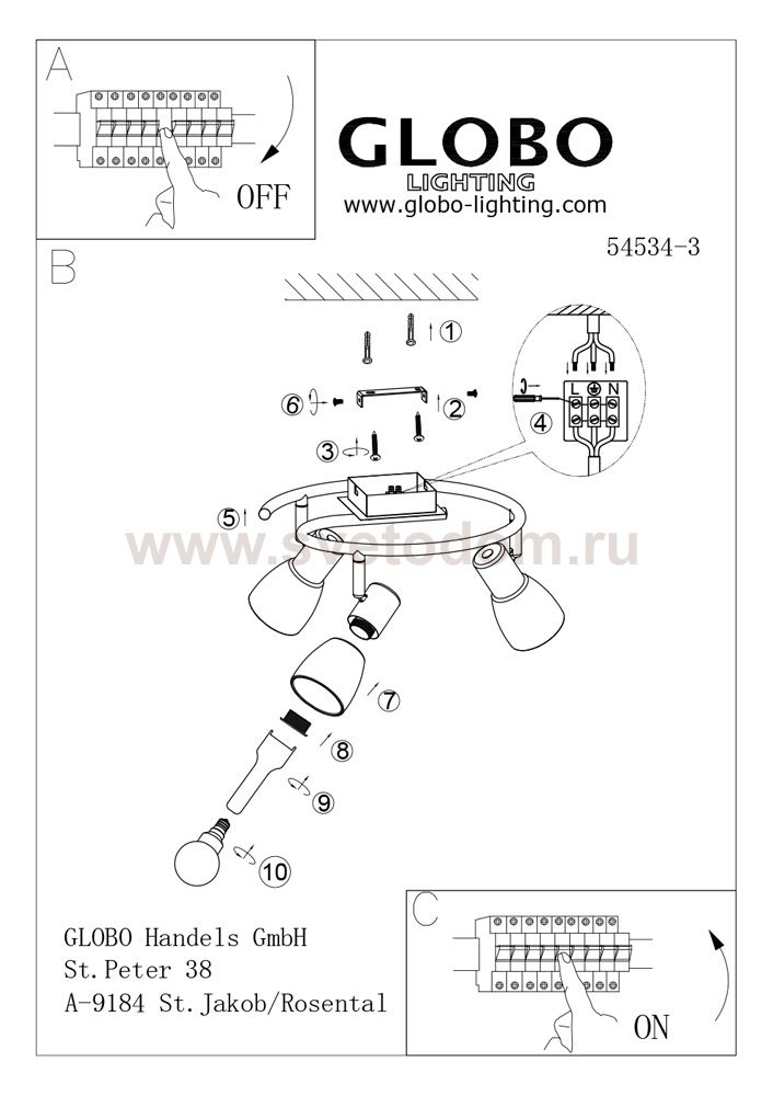 Светильники-споты – это оригинальные изделия с современным дизайном. Они позволяют не ограничивать свою фантазию при выборе освещения для интерьера. Такие модели обеспечивают достаточно качественный свет. Благодаря компактным размерам Вы можете использовать несколько спотов для одного помещения. Интернет-магазин «Светодом» предлагает необычный светильник-спот Globo 54534-3 по привлекательной цене. Эта модель станет отличным дополнением к люстре, выполненной в том же стиле. Перед оформлением заказа изучите характеристики изделия. Купить светильник-спот Globo 54534-3 в нашем онлайн-магазине Вы можете либо с помощью формы на сайте, либо по указанным выше телефонам. Обратите внимание, что у нас склады не только в Москве и Екатеринбурге, но и других городах России.