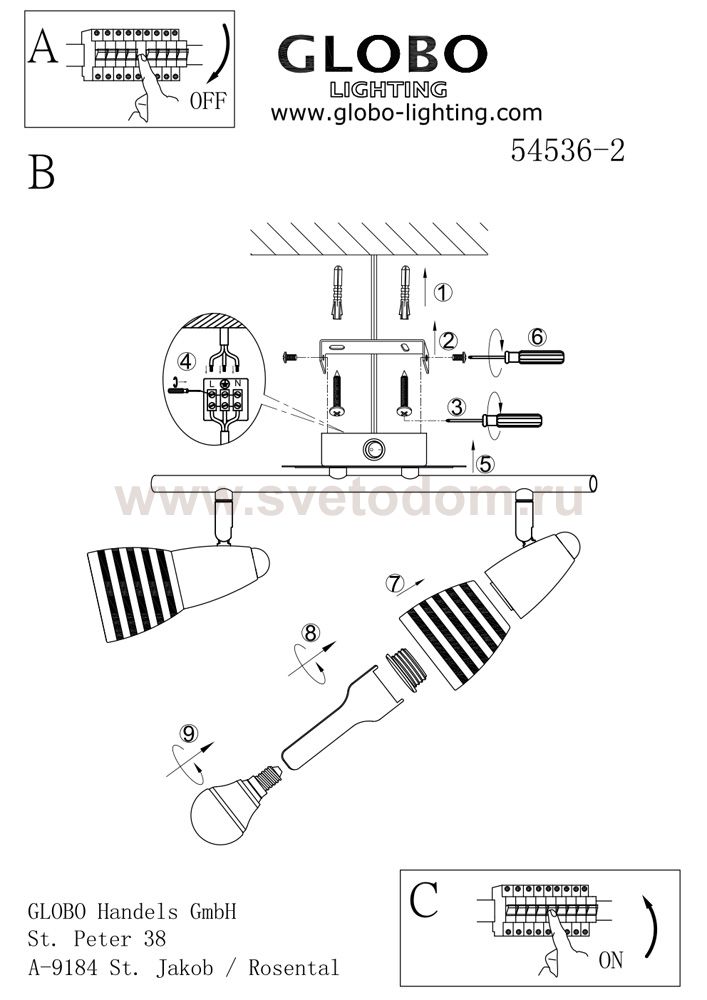 Светильники-споты – это оригинальные изделия с современным дизайном. Они позволяют не ограничивать свою фантазию при выборе освещения для интерьера. Такие модели обеспечивают достаточно качественный свет. Благодаря компактным размерам Вы можете использовать несколько спотов для одного помещения. Интернет-магазин «Светодом» предлагает необычный светильник-спот Globo 54536-2 по привлекательной цене. Эта модель станет отличным дополнением к люстре, выполненной в том же стиле. Перед оформлением заказа изучите характеристики изделия. Купить светильник-спот Globo 54536-2 в нашем онлайн-магазине Вы можете либо с помощью формы на сайте, либо по указанным выше телефонам. Обратите внимание, что у нас склады не только в Москве и Екатеринбурге, но и других городах России.