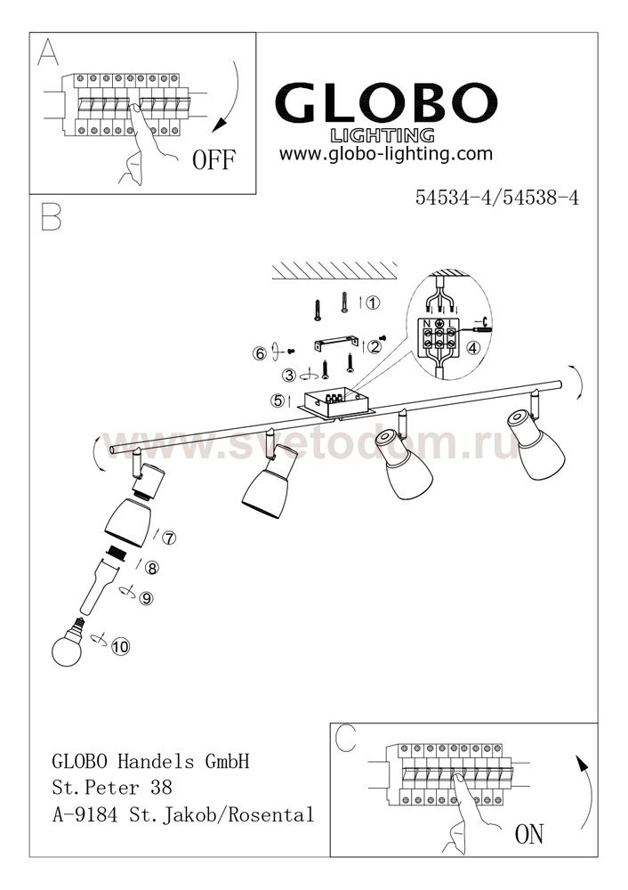 Светильники-споты – это оригинальные изделия с современным дизайном. Они позволяют не ограничивать свою фантазию при выборе освещения для интерьера. Такие модели обеспечивают достаточно качественный свет. Благодаря компактным размерам Вы можете использовать несколько спотов для одного помещения. Интернет-магазин «Светодом» предлагает необычный светильник-спот Globo 54538-4 по привлекательной цене. Эта модель станет отличным дополнением к люстре, выполненной в том же стиле. Перед оформлением заказа изучите характеристики изделия. Купить светильник-спот Globo 54538-4 в нашем онлайн-магазине Вы можете либо с помощью формы на сайте, либо по указанным выше телефонам. Обратите внимание, что у нас склады не только в Москве и Екатеринбурге, но и других городах России.