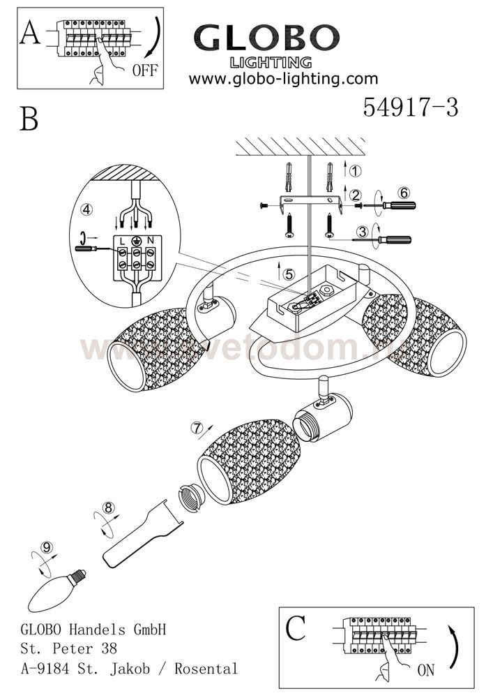 Светильники-споты – это оригинальные изделия с современным дизайном. Они позволяют не ограничивать свою фантазию при выборе освещения для интерьера. Такие модели обеспечивают достаточно качественный свет. Благодаря компактным размерам Вы можете использовать несколько спотов для одного помещения. Интернет-магазин «Светодом» предлагает необычный светильник-спот Globo 54917-3 по привлекательной цене. Эта модель станет отличным дополнением к люстре, выполненной в том же стиле. Перед оформлением заказа изучите характеристики изделия. Купить светильник-спот Globo 54917-3 в нашем онлайн-магазине Вы можете либо с помощью формы на сайте, либо по указанным выше телефонам. Обратите внимание, что у нас склады не только в Москве и Екатеринбурге, но и других городах России.
