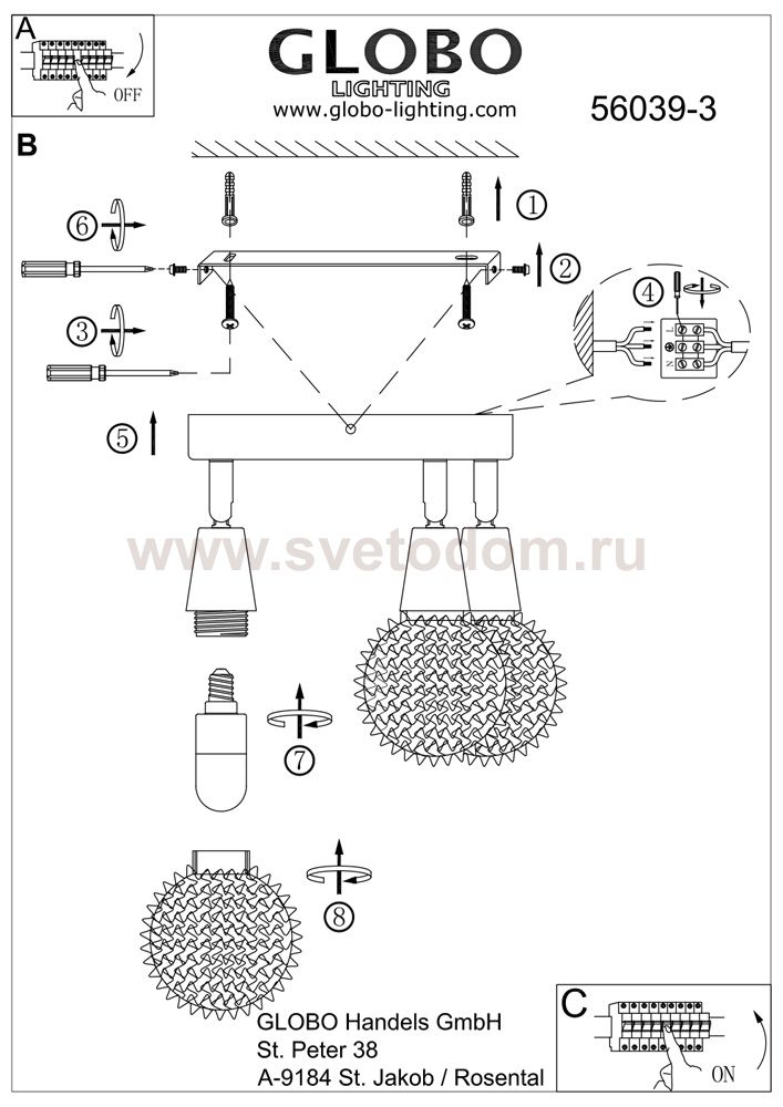 Светильники-споты – это оригинальные изделия с современным дизайном. Они позволяют не ограничивать свою фантазию при выборе освещения для интерьера. Такие модели обеспечивают достаточно качественный свет. Благодаря компактным размерам Вы можете использовать несколько спотов для одного помещения. Интернет-магазин «Светодом» предлагает необычный светильник-спот Globo 56039-3 по привлекательной цене. Эта модель станет отличным дополнением к люстре, выполненной в том же стиле. Перед оформлением заказа изучите характеристики изделия. Купить светильник-спот Globo 56039-3 в нашем онлайн-магазине Вы можете либо с помощью формы на сайте, либо по указанным выше телефонам. Обратите внимание, что у нас склады не только в Москве и Екатеринбурге, но и других городах России.