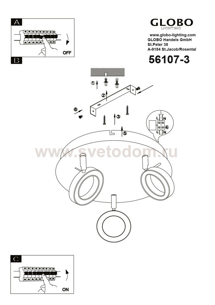 Светильники-споты – это оригинальные изделия с современным дизайном. Они позволяют не ограничивать свою фантазию при выборе освещения для интерьера. Такие модели обеспечивают достаточно качественный свет. Благодаря компактным размерам Вы можете использовать несколько спотов для одного помещения. Интернет-магазин «Светодом» предлагает необычный светильник-спот Globo 56107-3 по привлекательной цене. Эта модель станет отличным дополнением к люстре, выполненной в том же стиле. Перед оформлением заказа изучите характеристики изделия. Купить светильник-спот Globo 56107-3 в нашем онлайн-магазине Вы можете либо с помощью формы на сайте, либо по указанным выше телефонам. Обратите внимание, что у нас склады не только в Москве и Екатеринбурге, но и других городах России.