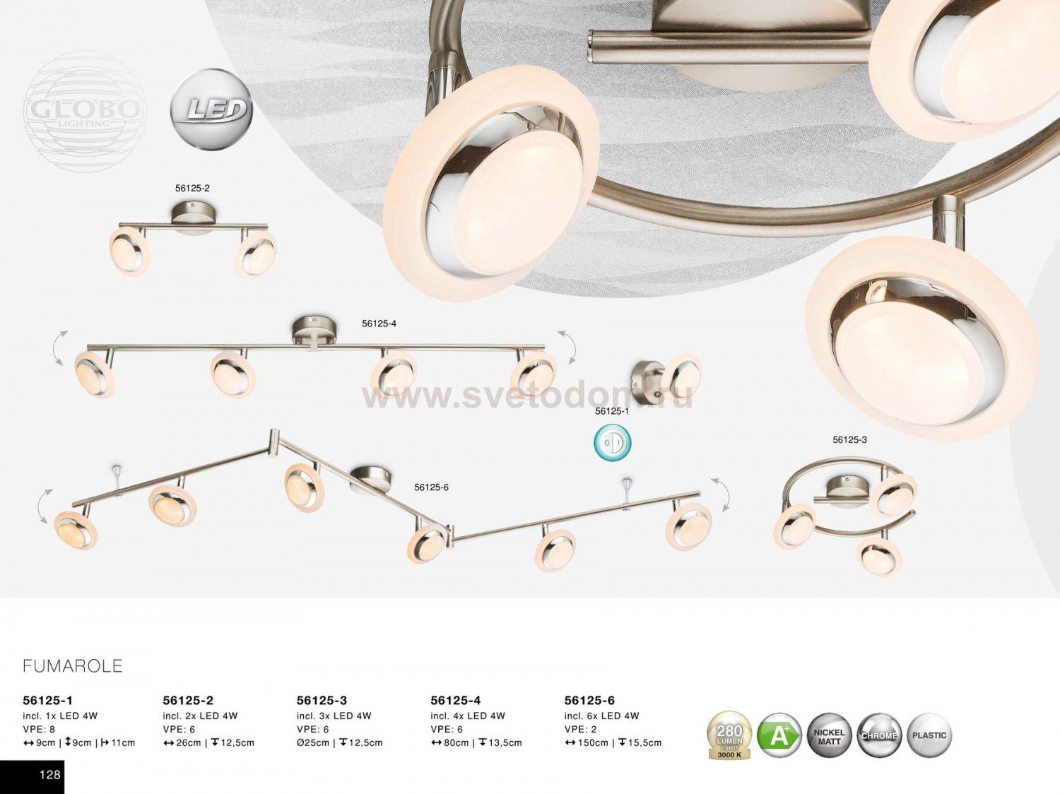 Спот Globo 56125-1 FUMAROLE отличается поворотной способностью регулировки светового потока и сделает Ваше помещение современным, стильным и запоминающимся! Наиболее функционально и эстетически привлекательно модель будет смотреться в гостиной, зале, холле или другой комнате. А в комплекте с люстрой, бра или торшером из этой же коллекции сделает интерьер по-дизайнерски профессиональным и законченным.