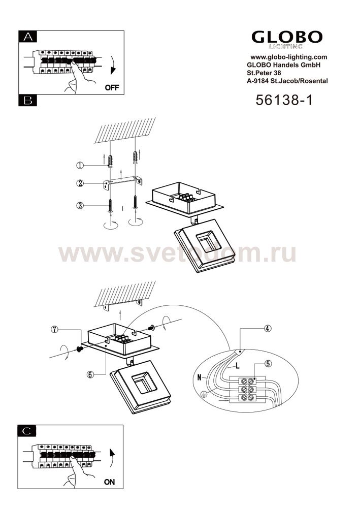 Светильники-споты – это оригинальные изделия с современным дизайном. Они позволяют не ограничивать свою фантазию при выборе освещения для интерьера. Такие модели обеспечивают достаточно качественный свет. Благодаря компактным размерам Вы можете использовать несколько спотов для одного помещения. Интернет-магазин «Светодом» предлагает необычный светильник-спот Globo 56138-1 по привлекательной цене. Эта модель станет отличным дополнением к люстре, выполненной в том же стиле. Перед оформлением заказа изучите характеристики изделия. Купить светильник-спот Globo 56138-1 в нашем онлайн-магазине Вы можете либо с помощью формы на сайте, либо по указанным выше телефонам. Обратите внимание, что у нас склады не только в Москве и Екатеринбурге, но и других городах России.