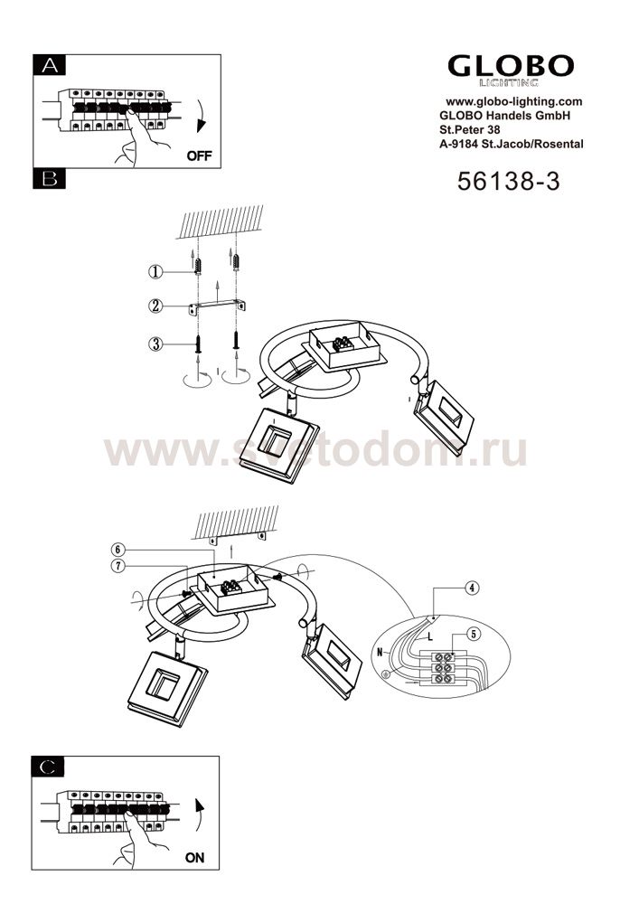 Светильники-споты – это оригинальные изделия с современным дизайном. Они позволяют не ограничивать свою фантазию при выборе освещения для интерьера. Такие модели обеспечивают достаточно качественный свет. Благодаря компактным размерам Вы можете использовать несколько спотов для одного помещения. Интернет-магазин «Светодом» предлагает необычный светильник-спот Globo 56138-3 по привлекательной цене. Эта модель станет отличным дополнением к люстре, выполненной в том же стиле. Перед оформлением заказа изучите характеристики изделия. Купить светильник-спот Globo 56138-3 в нашем онлайн-магазине Вы можете либо с помощью формы на сайте, либо по указанным выше телефонам. Обратите внимание, что у нас склады не только в Москве и Екатеринбурге, но и других городах России.