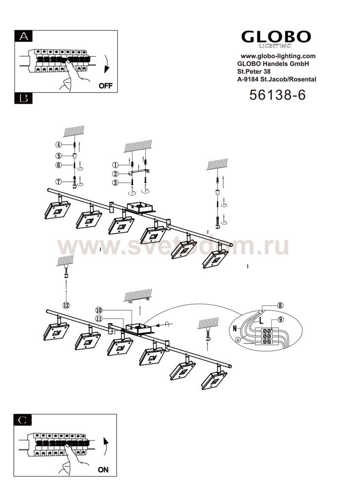 Светильники-споты – это оригинальные изделия с современным дизайном. Они позволяют не ограничивать свою фантазию при выборе освещения для интерьера. Такие модели обеспечивают достаточно качественный свет. Благодаря компактным размерам Вы можете использовать несколько спотов для одного помещения. Интернет-магазин «Светодом» предлагает необычный светильник-спот Globo 56138-6 по привлекательной цене. Эта модель станет отличным дополнением к люстре, выполненной в том же стиле. Перед оформлением заказа изучите характеристики изделия. Купить светильник-спот Globo 56138-6 в нашем онлайн-магазине Вы можете либо с помощью формы на сайте, либо по указанным выше телефонам. Обратите внимание, что у нас склады не только в Москве и Екатеринбурге, но и других городах России.
