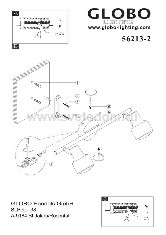 Светильники-споты – это оригинальные изделия с современным дизайном. Они позволяют не ограничивать свою фантазию при выборе освещения для интерьера. Такие модели обеспечивают достаточно качественный свет. Благодаря компактным размерам Вы можете использовать несколько спотов для одного помещения. Интернет-магазин «Светодом» предлагает необычный светильник-спот Globo 56213-2 по привлекательной цене. Эта модель станет отличным дополнением к люстре, выполненной в том же стиле. Перед оформлением заказа изучите характеристики изделия. Купить светильник-спот Globo 56213-2 в нашем онлайн-магазине Вы можете либо с помощью формы на сайте, либо по указанным выше телефонам. Обратите внимание, что у нас склады не только в Москве и Екатеринбурге, но и других городах России.