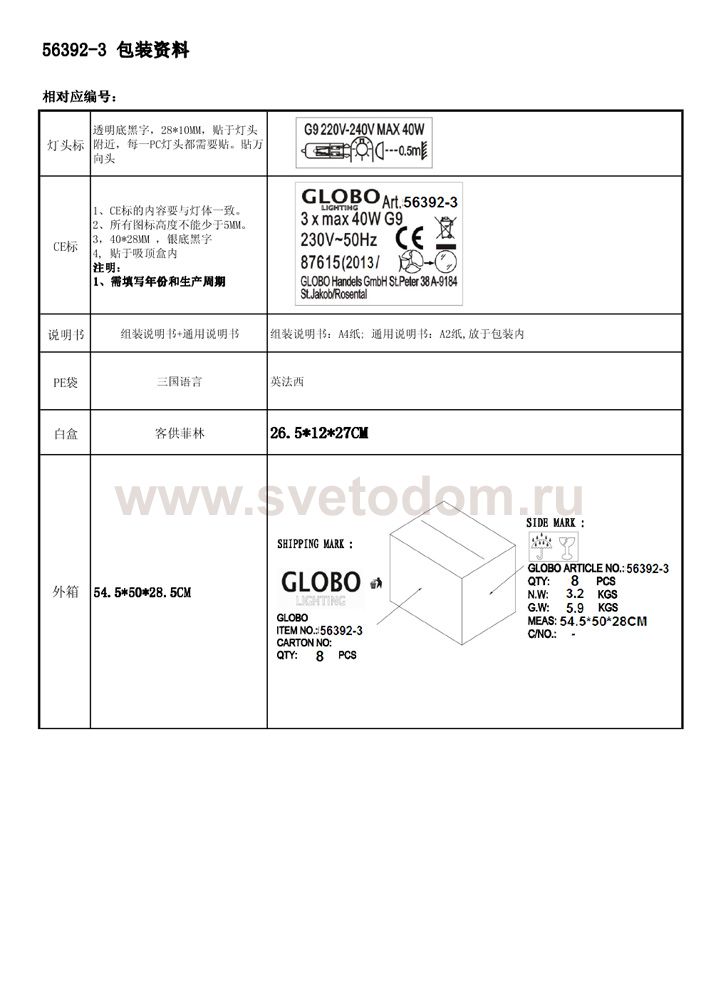 Компания «Светодом» предлагает широкий ассортимент люстр от известных производителей. Представленные в нашем каталоге товары выполнены из современных материалов и обладают отличным качеством. Благодаря широкому ассортименту Вы сможете найти у нас люстру под любой интерьер. Мы предлагаем как классические варианты, так и современные модели, отличающиеся лаконичностью и простотой форм. Стильная люстра Globo 56392-3 станет украшением любого дома. Эта модель от известного производителя не оставит равнодушным ценителей красивых и оригинальных предметов интерьера. Люстра Globo 56392-3 обеспечит равномерное распределение света по всей комнате. При выборе обратите внимание на характеристики, позволяющие приобрести наиболее подходящую модель. Купить понравившуюся люстру по доступной цене Вы можете в интернет-магазине «Светодом».