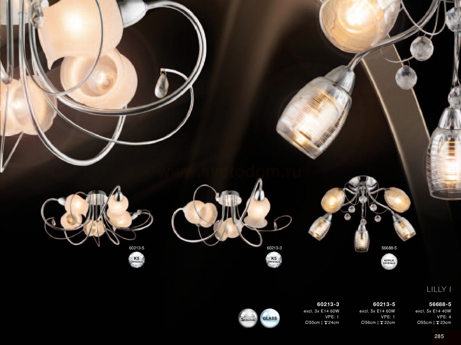 Люстра потолочная Globo 56688-5 сделает Ваш интерьер современным, стильным и запоминающимся! Наиболее функционально и эстетически привлекательно модель будет смотреться в гостиной, зале, холле или другой комнате. А в комплекте с настенными бра и торшером из этой же коллекции, сделает интерьер по-дизайнерски профессиональным и законченным.