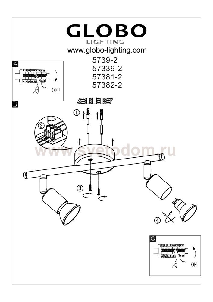 Светильники-споты – это оригинальные изделия с современным дизайном. Они позволяют не ограничивать свою фантазию при выборе освещения для интерьера. Такие модели обеспечивают достаточно качественный свет. Благодаря компактным размерам Вы можете использовать несколько спотов для одного помещения. Интернет-магазин «Светодом» предлагает необычный светильник-спот Globo 57381-2 по привлекательной цене. Эта модель станет отличным дополнением к люстре, выполненной в том же стиле. Перед оформлением заказа изучите характеристики изделия. Купить светильник-спот Globo 57381-2 в нашем онлайн-магазине Вы можете либо с помощью формы на сайте, либо по указанным выше телефонам. Обратите внимание, что у нас склады не только в Москве и Екатеринбурге, но и других городах России.