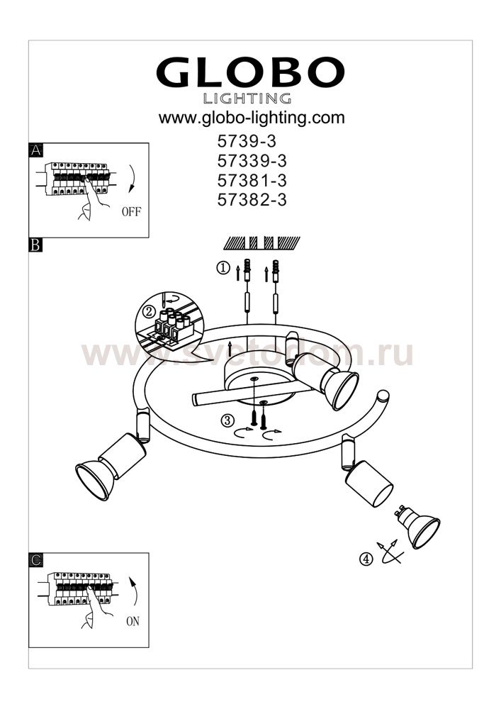 Светильники-споты – это оригинальные изделия с современным дизайном. Они позволяют не ограничивать свою фантазию при выборе освещения для интерьера. Такие модели обеспечивают достаточно качественный свет. Благодаря компактным размерам Вы можете использовать несколько спотов для одного помещения. Интернет-магазин «Светодом» предлагает необычный светильник-спот Globo 57381-3 по привлекательной цене. Эта модель станет отличным дополнением к люстре, выполненной в том же стиле. Перед оформлением заказа изучите характеристики изделия. Купить светильник-спот Globo 57381-3 в нашем онлайн-магазине Вы можете либо с помощью формы на сайте, либо по указанным выше телефонам. Обратите внимание, что у нас склады не только в Москве и Екатеринбурге, но и других городах России.