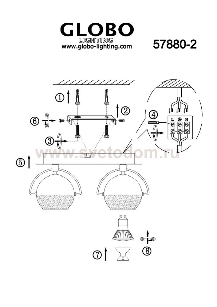 Светильники-споты – это оригинальные изделия с современным дизайном. Они позволяют не ограничивать свою фантазию при выборе освещения для интерьера. Такие модели обеспечивают достаточно качественный свет. Благодаря компактным размерам Вы можете использовать несколько спотов для одного помещения. Интернет-магазин «Светодом» предлагает необычный светильник-спот Globo 57880-2 по привлекательной цене. Эта модель станет отличным дополнением к люстре, выполненной в том же стиле. Перед оформлением заказа изучите характеристики изделия. Купить светильник-спот Globo 57880-2 в нашем онлайн-магазине Вы можете либо с помощью формы на сайте, либо по указанным выше телефонам. Обратите внимание, что у нас склады не только в Москве и Екатеринбурге, но и других городах России.