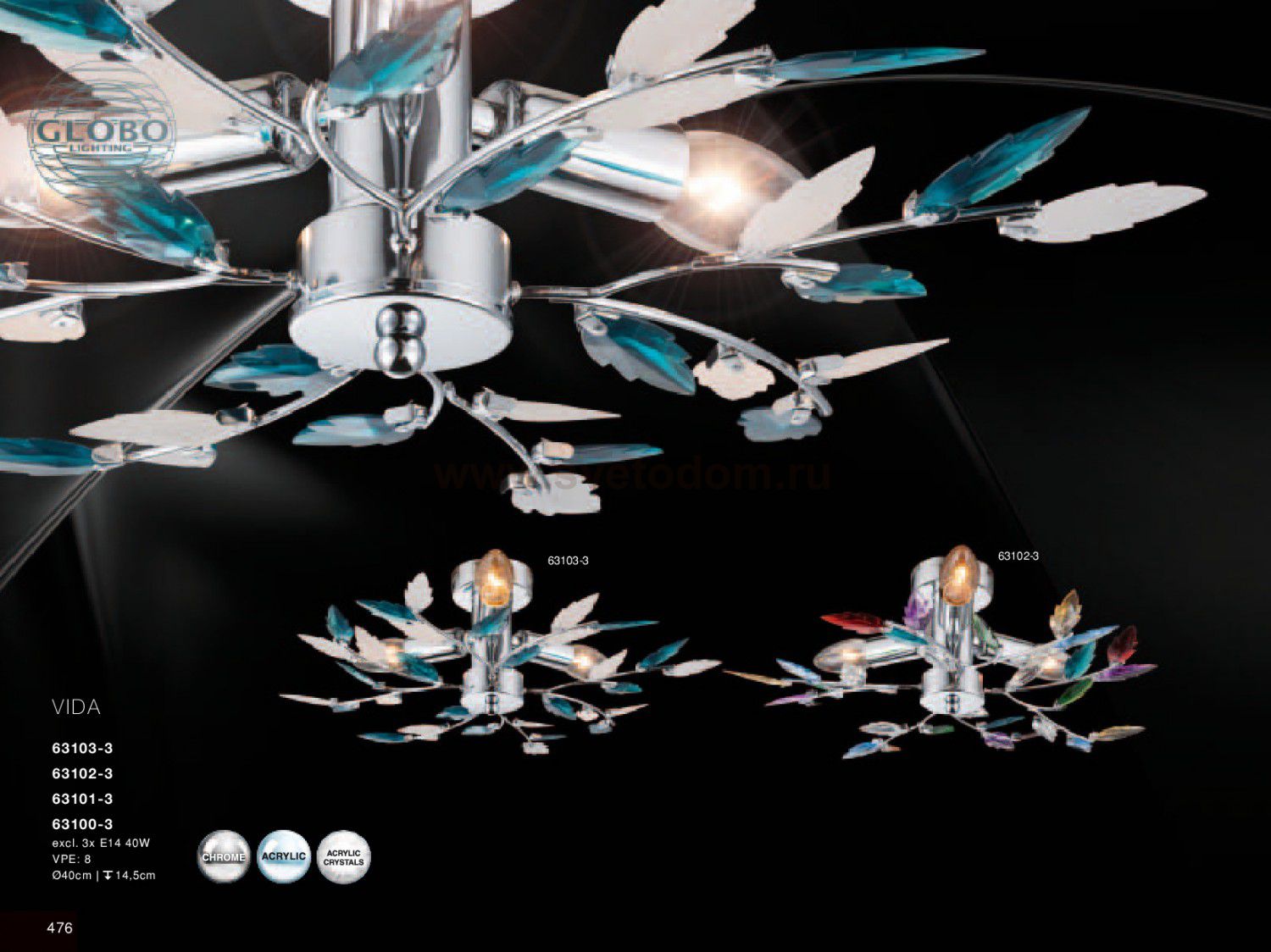 Компания «Светодом» предлагает широкий ассортимент люстр от известных производителей. Представленные в нашем каталоге товары выполнены из современных материалов и обладают отличным качеством. Благодаря широкому ассортименту Вы сможете найти у нас люстру под любой интерьер. Мы предлагаем как классические варианты, так и современные модели, отличающиеся лаконичностью и простотой форм. Стильная люстра Globo 63103-3 станет украшением любого дома. Эта модель от известного производителя не оставит равнодушным ценителей красивых и оригинальных предметов интерьера. Люстра Globo 63103-3 обеспечит равномерное распределение света по всей комнате. При выборе обратите внимание на характеристики, позволяющие приобрести наиболее подходящую модель. Купить понравившуюся люстру по доступной цене Вы можете в интернет-магазине «Светодом».