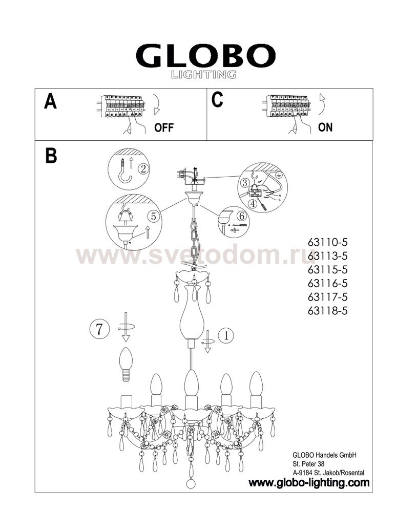 Компания «Светодом» предлагает широкий ассортимент люстр от известных производителей. Представленные в нашем каталоге товары выполнены из современных материалов и обладают отличным качеством. Благодаря широкому ассортименту Вы сможете найти у нас люстру под любой интерьер. Мы предлагаем как классические варианты, так и современные модели, отличающиеся лаконичностью и простотой форм. Стильная люстра Globo 63110-5 станет украшением любого дома. Эта модель от известного производителя не оставит равнодушным ценителей красивых и оригинальных предметов интерьера. Люстра Globo 63110-5 обеспечит равномерное распределение света по всей комнате. При выборе обратите внимание на характеристики, позволяющие приобрести наиболее подходящую модель. Купить понравившуюся люстру по доступной цене Вы можете в интернет-магазине «Светодом».