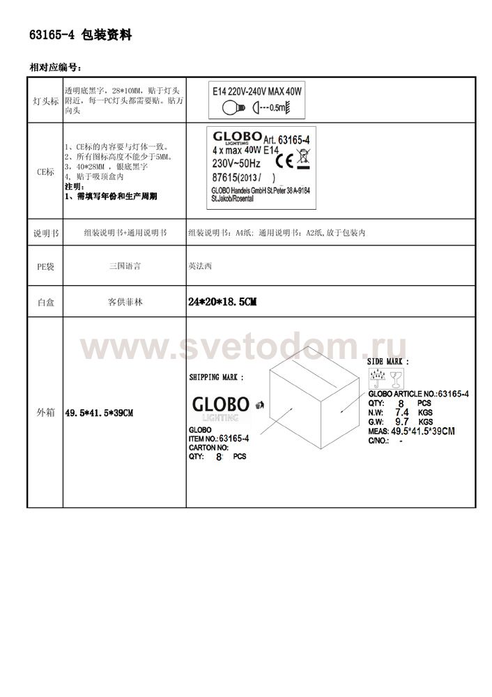 Компания «Светодом» предлагает широкий ассортимент люстр от известных производителей. Представленные в нашем каталоге товары выполнены из современных материалов и обладают отличным качеством. Благодаря широкому ассортименту Вы сможете найти у нас люстру под любой интерьер. Мы предлагаем как классические варианты, так и современные модели, отличающиеся лаконичностью и простотой форм. Стильная люстра Globo 63165-4 станет украшением любого дома. Эта модель от известного производителя не оставит равнодушным ценителей красивых и оригинальных предметов интерьера. Люстра Globo 63165-4 обеспечит равномерное распределение света по всей комнате. При выборе обратите внимание на характеристики, позволяющие приобрести наиболее подходящую модель. Купить понравившуюся люстру по доступной цене Вы можете в интернет-магазине «Светодом».