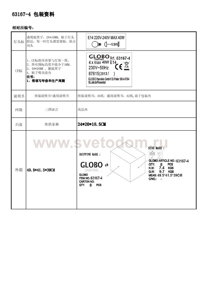 Компания «Светодом» предлагает широкий ассортимент люстр от известных производителей. Представленные в нашем каталоге товары выполнены из современных материалов и обладают отличным качеством. Благодаря широкому ассортименту Вы сможете найти у нас люстру под любой интерьер. Мы предлагаем как классические варианты, так и современные модели, отличающиеся лаконичностью и простотой форм. Стильная люстра Globo 63167-4 станет украшением любого дома. Эта модель от известного производителя не оставит равнодушным ценителей красивых и оригинальных предметов интерьера. Люстра Globo 63167-4 обеспечит равномерное распределение света по всей комнате. При выборе обратите внимание на характеристики, позволяющие приобрести наиболее подходящую модель. Купить понравившуюся люстру по доступной цене Вы можете в интернет-магазине «Светодом».